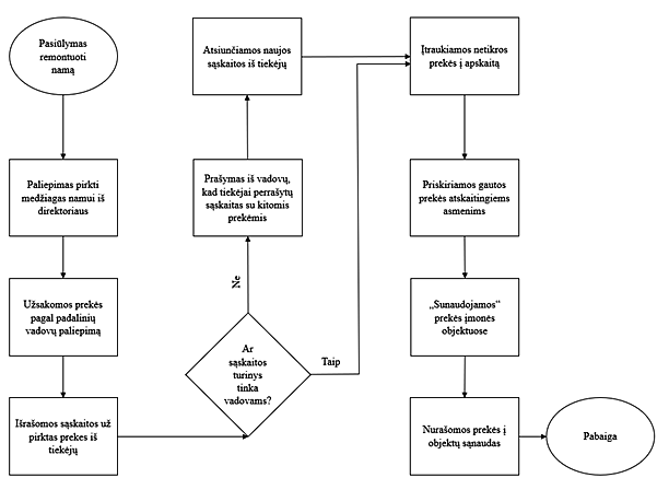 Įmonės apskaita turėjo būti tvarkoma laikantis visų norminių aktų reikalavimų, kurie reglamentuoja jos vykdomą veiklą, turto, nuosavo kapitalo ir įsipareigojimo pasikeitimus. Nustatyta, kad įmonė pažeidė LR buhalterinės apskaitos įstatymo 2 str. 1 dalies, dalies, 4 str., 13 str. 1 dalies 4 punkto reikalavimus šiais veiksmais: apskaitytų dokumentų duomenys apie gautų statybinių medžiagų pavadinimus galėjo neatvaizduoti šių operacijų tapatumo, bendrovės buhalterinė apskaita neteikė tikslios, patikimos, palyginamos informacijos apie faktiškai gautas statybines medžiagas ir bendrovėje apskaitytų dokumentų turinys galėjo neatitikti faktiškai gautų statybinių medžiagų turiniui. Iš viso įmonė gavo statybinių medžiagų už 23431,79 Eur be PVM ir už tokią pat sumą įmonės apskaitoje medžiagų buvo nurašyta. Ši suma apskaitoje atvaizduota teisingai, tačiau buvo apskaitytos kitokios nei faktiškai gautos prekės. Dėl šių pažeidimų tapo neįmanoma tiksliai nustatyti įmonės pajamų, sąnaudų, turto struktūros ir dydžio, nes namo remonto darbai ir jam panaudotos medžiagos nebuvo apskaitytos bei namo remonto darbų ir medžiagų sąnaudos buvo padengtos kitų objektų sąskaitą.