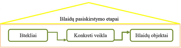 Pagrindinė veiklos sritimis pagrįsto savikainos skaičiavimo nuostata yra ta, jog kiekvienai veiklai reikia atitinkamų išlaidų, kai produktų pardavimas ar gamyba sudaro įvairios veiklos poreikį. Pasak Baker (1998), visos išlaidos, kurios yra priskiriamos atitinkamai veiklos sričiai, yra atskirtos ir tarpusavyje suderintos. Dėl šių priežasčių yra išskiriamas svarbus ABC sistemos bruožas, jog pirmiausia skaičiuojamos įmonės tam tikrų veiklos sričių visos pridėtinės išlaidos, o vėliau kalkuliuojamos esamos produkcijos išlaidos. Yra remiamasi prielaida, jog kiekvienai veiklai reikia tam tikrų išlaidų, todėl yra svarbu gebėti suvokti veiksnius, darančius įtaką kiekvienai veiklos sričiai (Lakis, Mackevičius, Gaižauskas, 2010). Šis metodas yra daugiau orientuotas į veiklą, kuri tampa pagrindiniu išlaidų objektu, o pats metodo taikymas remiasi planavimu bei kontrole (Žižytė, Tamulevičienė, 2018). Supaprastintu požiūriu, paslaugos ar produkto savikainos kalkuliavimas yra padalijamas į du etapus (žr. 4 pav.).