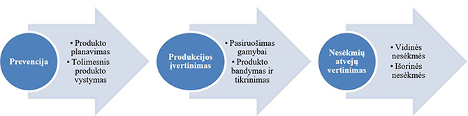 Pirmasis elementas – prevencija – apima produkto kokybės planavimą, dizainą, vystymą, techninę priežiūrą, ir kokybės gerinimo programas. Produkcijos įvertinimas yra apibūdinamas kaip pasirengimas gaminti produktą, esminis jo patikrinimas ir bandymai. Išbandžius produktą, seka bandymo rezultatų analizė bei ataskaitų teikimas. Nesėkmės yra skirstomos į vidaus ir išorės nesėkmes. Vidaus nesėkmės yra apibrėžiamas kaip produkto keitimas, perdarymas ar taisymas, siekiant pašalinti esamas vidines problemas. Tuo tarpu išorės nesėkmės yra apibūdinamos kaip klientų skundai, pretenzijos dėl garantijos, produktų grąžinimas ir pardavimų praradimas. Anot Dikavičiaus, Stoškaus (2003), sunkiausia nustatyti nesėkmės išlaidas, kurios paprastai sudaro didžiausią kokybės išlaidų dalį. Todėl būtini apskaitos metodai, kad jais galima būtų įvertinti ne tik šių išlaidų struktūrą, bet ir įvairių technologinių sprendimų efektyvumą. Todėl kiekviena įmonė, atsižvelgusi į savo veiklos specifiką, turėtų parengti kokybės išlaidų skaičiavimo ir apskaitos metodiką. Praktikoje neretai pastebima, jog literatūroje nurodytus kokybės išlaidų elementus nėra lengva susieti su tais, kuriuos naudoja įmonės. Priskirti atitinkamus elementus yra daug laiko užimantis ir sudėtingas procesas, o patys elementai nėra pakankamai išsamūs, todėl turėtų būti modifikuojami, siekiant atitikti reikiamą gamybos būdą.