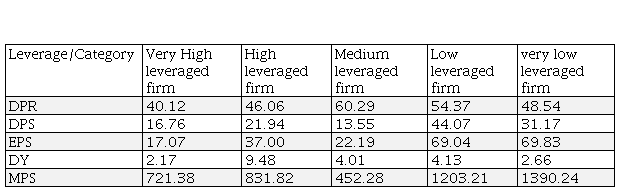 It is seen from the table-6 that the DPR of medium leveraged firm is highest (60.29%) compared to another leveraged group. But the market price of share (1390.24) and earnings per share (69.81%) of the low leveraged firm are the highest.