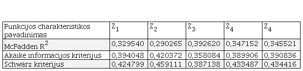 Modelių (Z funkcijų) charakteristikas nusakantys kriterijai pateikti 2 lentelėje