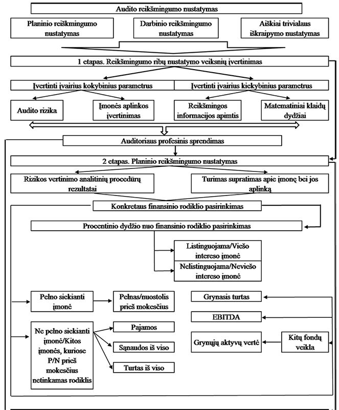 Nepaisant to, kad reikšmingumo nustatymo procesas yra viena sudėtingiausių audito sričių dėl galimo skirtingo tarptautiniuose audito standartuose esančio reglamentavimo interpretavimo, sukurtas reikšmingumo nustatymo procesą apibendrinantis modelis (1 pav.).