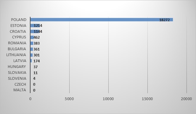 Highest market capitalisation of family firms are in Poland (EUR 18,272.31 million), Estonia (EUR 1,214.56 million), Croatia (EUR 1,144.15 million), Cyprus (EUR 462.44 million), Romania (EUR 382.99 million) and Bulgaria (EUR 360.91 million), while in Czech Republic and Malta we did not find family businesses companies at all (see Figure 4).