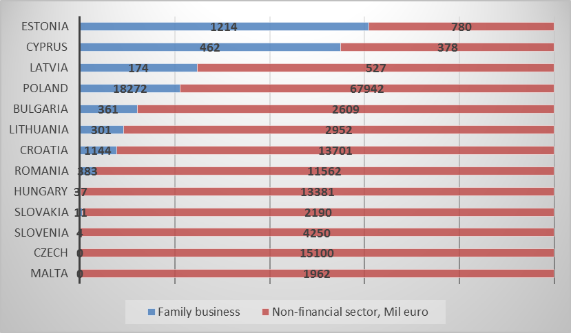 Nationally, the highest market capitalisation of family firms is in Estonia (61%), Cyprus (55%), Latvia (25%), Poland (21%), Bulgaria (12%), Lithuania (9%), Croatia (8%) and Romania (3%).