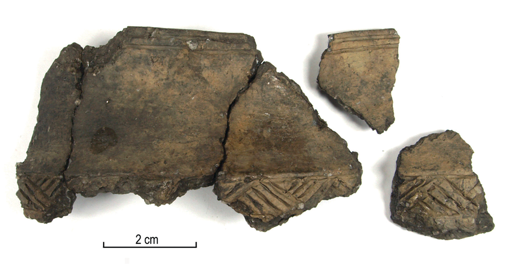 2 pav. Tornimäe gyvenvietėje rastos vikingų laikotarpio keramikos šukės (AI 6688: 186). Heidi Luik nuotrauka