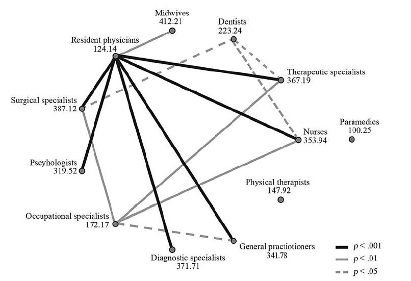 It is interesting to note that the psychologists had a statistically significantly lower PHQ-9 score compared to the resident physicians (mean rank, 241.02 vs. 351.33, . = .04) and had the lowest screen-positive rate for clinically relevant depressive symptoms (12.9% vs. 16.7–40%; paramedics (. = 2) were not included into the range due to the very low number of respondents). The underlying causes of this gap may be related to different psychosocial work environments or better stress management in psychologists (e.g., due to better education in psychology of distress, which can act as a protective factor [38]). Maladaptive strategies for coping with workplace stressors (e.g., denial or avoidance of stressors, wishful thinking, self-blame) may be associated with negative psychological adjustment. In physicians, passive coping styles indeed were shown to be strongly positively associated with poorer mental health [39]. Also, the psychologists were statistically significantly older compared to the resident physicians (mean rank, 319.52 vs. 124.14; . < .001), although the age of the former did not differ statistically significantly from any other specialty group.