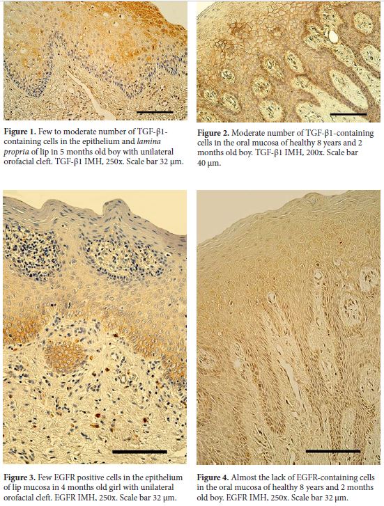 On the basis of above mentioned the aim of the study was to evaluate the distribution of TGF-β1 and EGFR-containing cells in cleft affected lip mucosa.