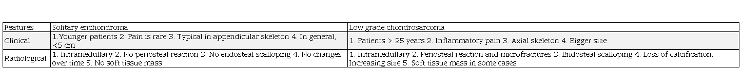 21. Ferrer-Santacreu EM, et al. Enchondroma versus Chondrosarcoma in Long Bones of Appendicular Skeleton: Clinical and Radiological Criteria—A Follow-Up. Journal of Oncology. 2016: 1-10. doi: https://doi.org/10.1155/2016/8262079