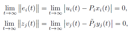 where ei(t) = ui(t) − Pixi(t), zj(t) = vj(t) − P˜j yj(t).