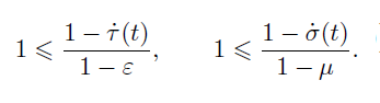 τ (t) and σ(t) are differential functions with 0 ≤ τ˙(t) ≤ ε < 1, 0 ≤ σ˙ (t) ≤ µ < 1.
