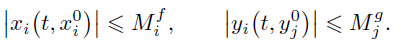 bounded with x0, y0 ∈ R being the initial values. That is, there exist positive constants Mf and Mg such that