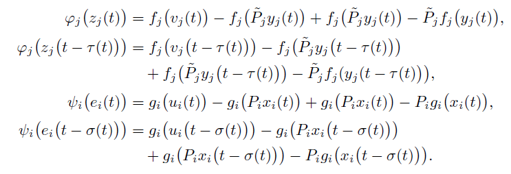where ϕj(zj(·)) = fj(vj(·)) − P˜j fj(yj(·)), ψi(ei(·)) = gi(ui(·)) − Pigi(xi(·)), Pi, and P j are scaling constants
