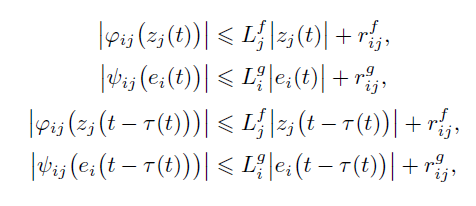 If the activation functions satisfy Assumption 3 [2], then from Lagrange mean value theorem, it is not difficult to check that fj(u) and gj(u) satisfy the globally Lipschitz condition. That is,