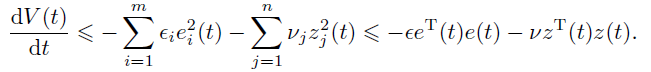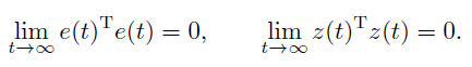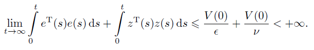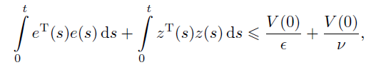 Hence, V (t) ≤ V (0) for all t ∈ [0, +∞), which drives that e(t), z(t), e˙(t), and z˙(t) are bounded for all t ∈ [0, +∞). Consequently, the derivative of e(t)Te(t) and z(t)Tz(t)