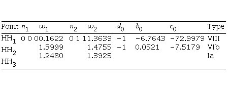 lowest curve of . in Fig. 6. By Lemma 1, .. is stable in the bottom left region, since the crossing directions of the three stability switching curves are all pointing outside of this region. These three stability crossing curves intersect at HH.(0.7717,9.8717), HH.(0.8413,7.9598), and HH.(0.9011,7.6982). By the normal form derivation process in Section 3, we obtain the parameters in Table 1. For HH., we get that case VIII oc- curs [12]. Near the double Hopf singularity HH., there are six different kinds of phase diagrams in six regions, which are shown in Fig. 7(a). The six regions are divided by .., . . . , l. with ..: .. = 1.5379.., ..: .. = 62.6720.., ..: .. = 58.5472.. (.. ≥ 0), ..: .. = 15.1454.. (.. ≥ 0). For HH., we get that case VIb occurs. There are also six different kinds of phase diagrams in six regions near the double Hopf bifurcation