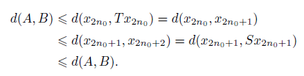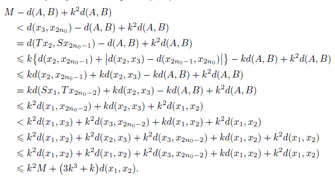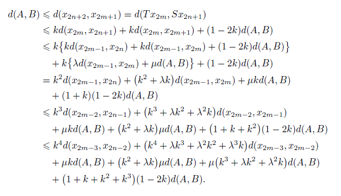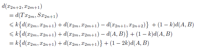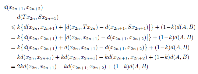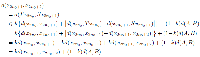 Proof. Let .. be an arbitrary point in ., and let {x.} be a sequences constructed as .2.+1 = Tx2., .2.+2 = Sx2.+1 for all . ∈. If there exists .. ∈ N such that