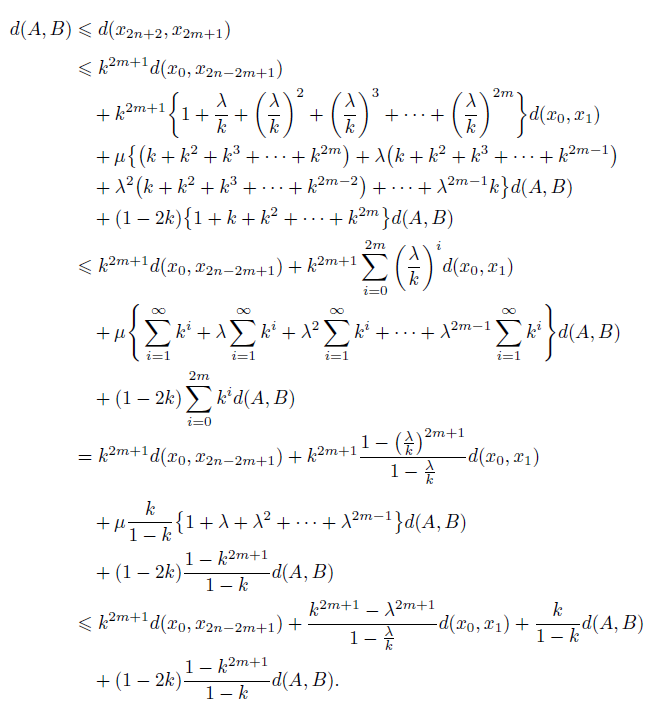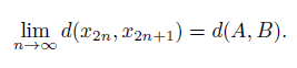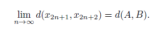 Now, since (A, B) is a proximally complete pair, there exist subsequences {.2.. } ⊂ {.2.} and {.2.. +1} ⊂ {.2.+1} such that .2.. → .. ∈ . and .2.. +1 → .. ∈ B. Moreover,