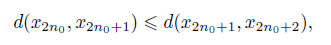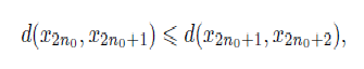 when . is even, . is odd and n, m ≥ . . We have to show that .2. and .2.+1 have convergent subsequences in . and ., respectively. First, note that since . is a compact subset of ., then {.2.+1} has a such subsequence. Now, if {.2.} has a subsequence in .., then {.2.} has a convergent subsequence because .. is a compact subset of .. Assume {.2.} has not a subsequence in .., then there exists .. ∈ N such that .2. ∈ .. for all . ≥ ... In this case, from equation (3) we can say that the sequence .2. → (0, −1) ∈ .. as . → ∞