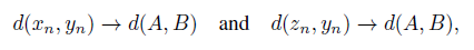 (See [26].) Let A and B be subsets of a metric space .X, d.. Assume that .A, B. has the UC-property. Let x. and y. be sequences in A and B, respectively, such that either of the following holds: