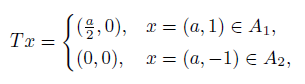 for all x A, y B. It can be shown that (T, S) is a cyclic .-contraction pair with . = 1.2. Therefore, since all the hypotheses of Theorem 4 are satisfied, . and . have best proximity points in . and ., respectively. Besides, if we define the mapping . : . ∪ . → . ∪ . as