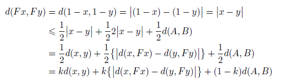 for all x, y X, then . is said to be a .-contraction mapping. Then he proved that every .-contraction self mapping of a complete metric space has a unique fixed point.