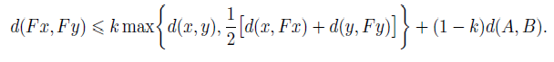 Let .X, d. be a complete metric space, A, B be two closed subsets of X and T : . → B and S : . → A be two mappings. If there exists k ∈ (0, 1) such that