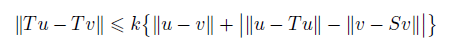 for all x A and y B, where k (0, 1). Then there exists a unique z A B such that Tz = Sz . z.