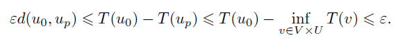 Let T . X Y R + be a proper, l.s.c., bounded from below function. Let ε > . be arbitrary chosen and fixed, and let u. V U be an ordered pair such that the inequality