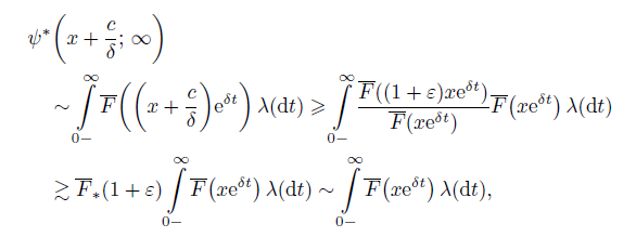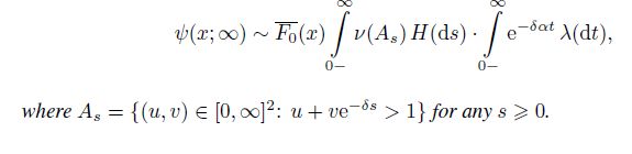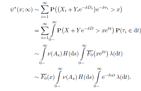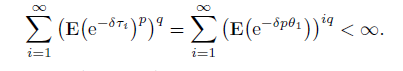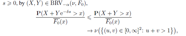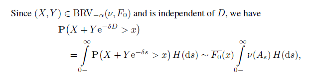 which is integrable with respect to H(ds). By (8), F0 −α, and ν((1, ]2) > 0 we have that {Xi + Yie−δDi ; i ϵ N} constitutes a sequence of i.i.d. random variables with regularly varying tails. Note that for any p > 0 and q > 0,