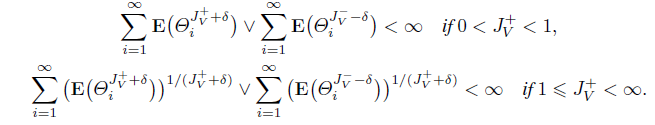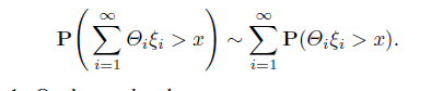 Lemma 1. Let {ξi; I ϵ N} be a sequence of i.i.d. real-valued random variables with common distribution V and V ( -x) = o(V (x)), and let {Θi; i ϵ N} be another sequence of nonnegative random variables independent of {ξi; I ϵ N} . Assume that there exists a small δ > 0 such that