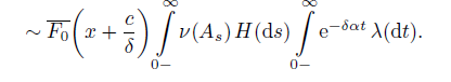 (16)The asymptotic value on the right-hand side of (4) is computed by numerical integration with ∞ ν(As)λ2e−λ2 s ds ≈ 3.190531 and _0∞e−δαtλ1 dt = λ1/(δα) ≈ 22.222.