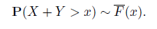 Lemma 2. Let (X, Y ) be a nonnegative random vector with marginal distributions F and G, respectively. ϵ C If F and G(x) = o(F (x)), then, regardless of arbitrary dependence between X and Y ,