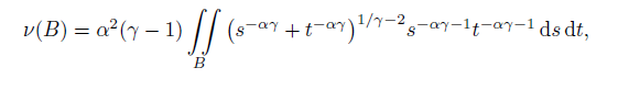 It can be verified from [19, Lemma 5.2] that if (X, Y ) possesses a bivariate Gumbel copula (14) with γ > 1 and the marginal distributions F = G ∈ R−α for some α > 0, then (X, Y ) ϵ BRV−α(ν, F0) for some nondegenerate limit measure ν and some reference distribution F0. Furthermore, according the discussions in [17, Sect. 4], it can be calculated that for any Borel set B ⊂ [0, ∞]2,