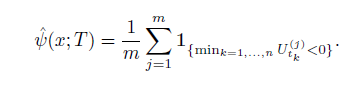 For the simulated estimation ψˆ(x; T ) of the ultimate ruin probability ψ(x;∞), we first divide the time interval [0, T ] into n parts, and for the given tk = kT/n, k = 1, . . . , n, we generate m samples N (j), j = 1, . . . , m. Then, for the jth sample N (j), generate N (j) pairs of (X(j), Y (j)) following the Gumbel copula of the form (14) with marginal Pareto distributions F = G of the form (15), and generate the delay times D(j), i = 1, . . . , N (j).