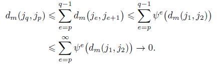 (7)Next, we will prove that {jn} is a Cauchy sequence. Consider the natural numbers q, p, q > p. By using the triangular inequality and relation (7) we obtain