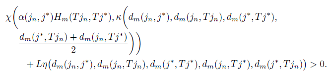 α(j, k)Hbm (Tj, Tk) ≤ ψ dm(j, k) for each j, k ∈ X.