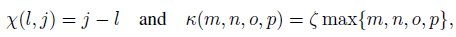 (C1) χ(al, κ(m, n, o, p)) ≤ κ(m, n, o, p) − al for any a, m, n, o, p ≥ 0;