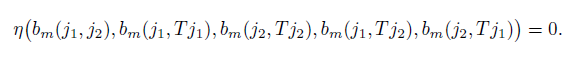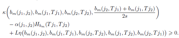 This inequality, jointly with condition (K2), imposes bm(j2, j3) = 0, which is a contradiction to the assumption that j2 ≠ j3. Thus, bm(j2, j3) < bm(j1, j2). Relation (13) yields