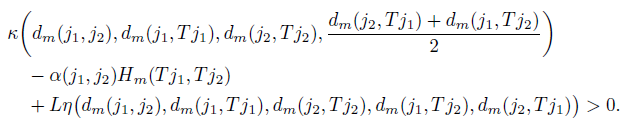 In this article, we will use the following type of implicit functions presented in [7]. Here κψ represents the set of functions κ : (R+)4 → R+ = [0,∞ ) endowed with the following properties: