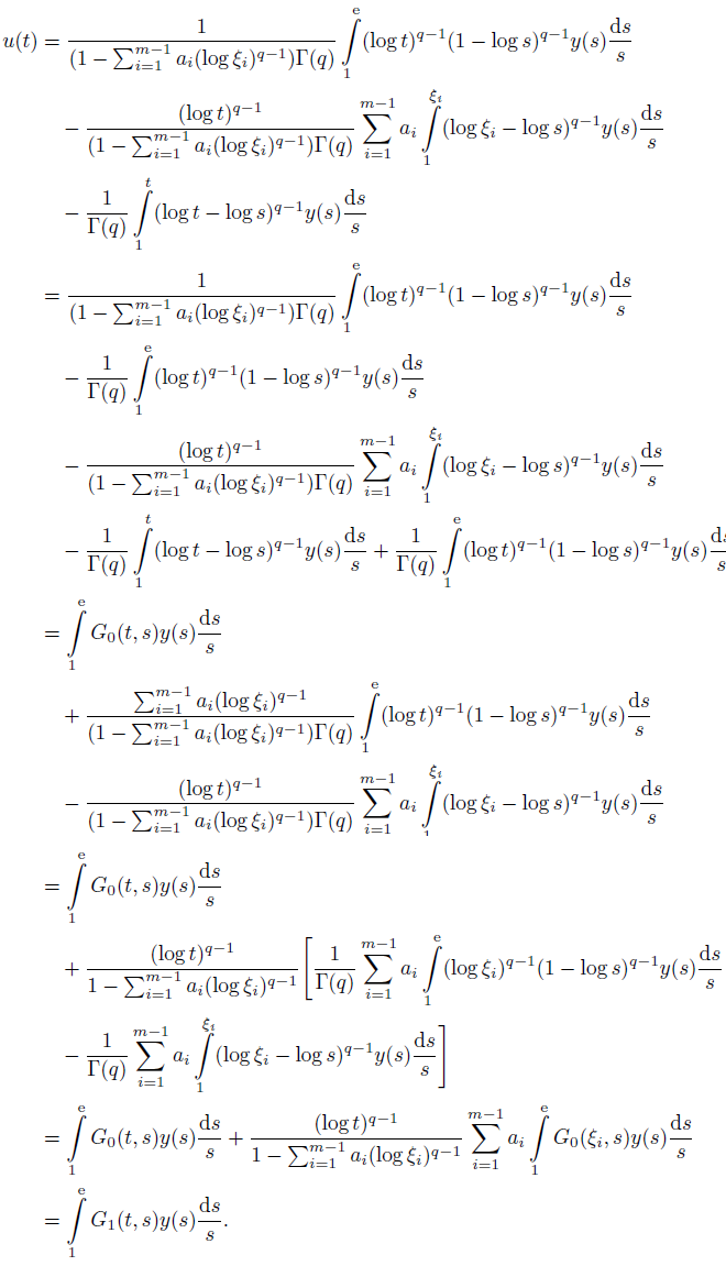 Let y C[1, e]. Then the Hadamard fractional multi-point boundary value problems