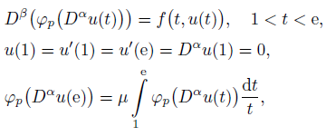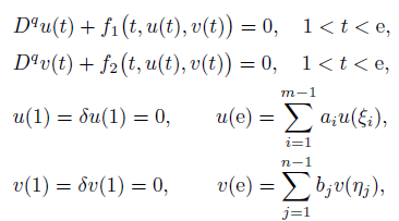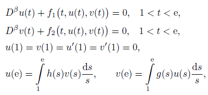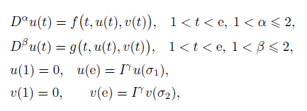 In (1), let . = 2.5, . = .= 2, .. = .. = 2, .. = .. = 1.5, and then we obtain the system of Hadamard fractional three-point boundary value problems