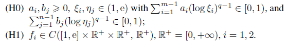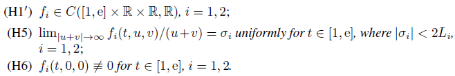 Suppose that (H0) and the following conditions hold: (H1.) f. ∈ .([1, e] × R × R, R), i = 1, 2;