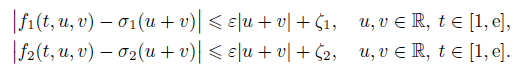 where σ. < 1.51, µ. = 0, ν. = 0 for u, v R, . [1, e], . = 1, 2. Then all the conditions of Theorem 2 hold. Hence, (9) has at least one nontrivial solution.
