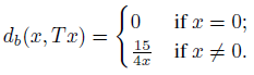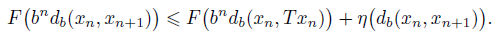 Proof. Suppose that . has no fixed points. Then for all x ∈ X, we have db(x, Tx) > 0. Since