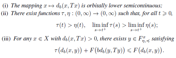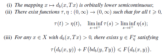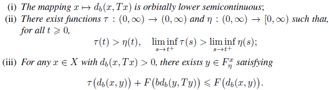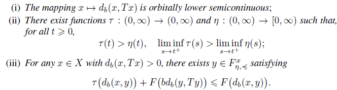 Therefore, x ›→ db(x, Tx) is orbitally lower semicontinuous. For x ∈ X, we have