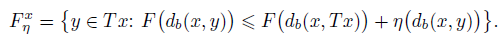 and n : (0, ∞) → (0, ∞). For x ∈ X with db(x, Tx) > 0, define a set
