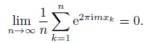 By the definition, a sequence {xk: K ∈ N} ⊂ R is called uniformly distributed modulo 1, if, for every subinterval (a, b] ⊂ (0, 1],