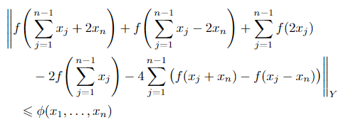 are Banach spaces. In 1978, a generalized version of the theorem of Hyers by considering the stability problem with unbounded Cauchy differences was given by Rassias [36]. This phenomenon of stability that was introduced by Rassias [36] is called the Hyers–Ulam–Rassias stability of functional equations.