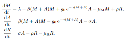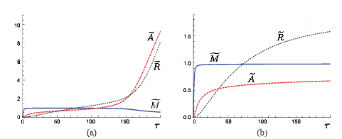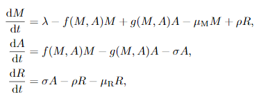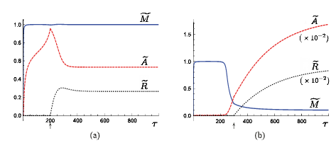, whereas we do not describe the detail here. This indicates that the solution (M (t), A(t), R(t)) cannot reach 0 at any