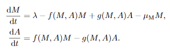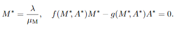 For this system, similarly with Lemma 1, we can show that for any nonnegative initial condition (M (0), A(0)), the solution (M (t), A(t)) of (2) is positive for any finite